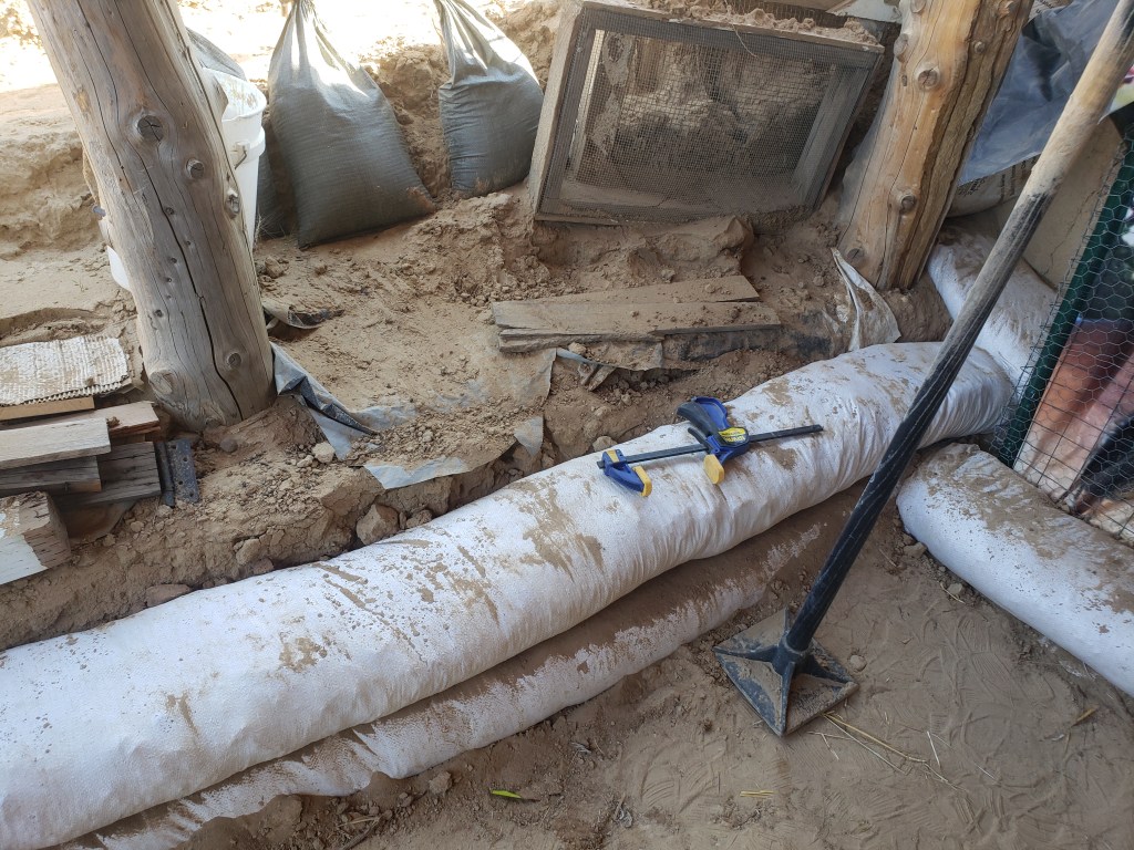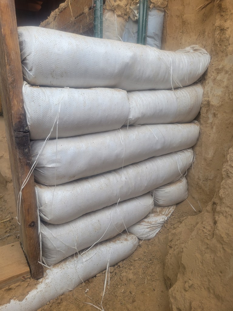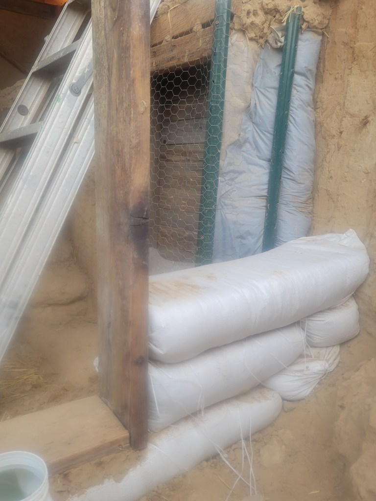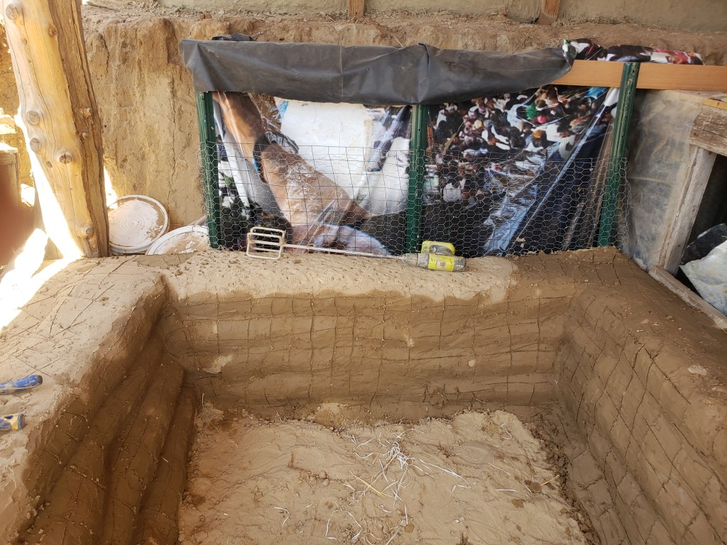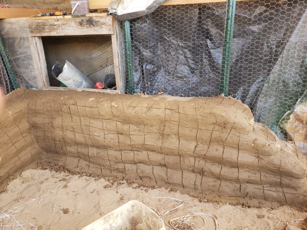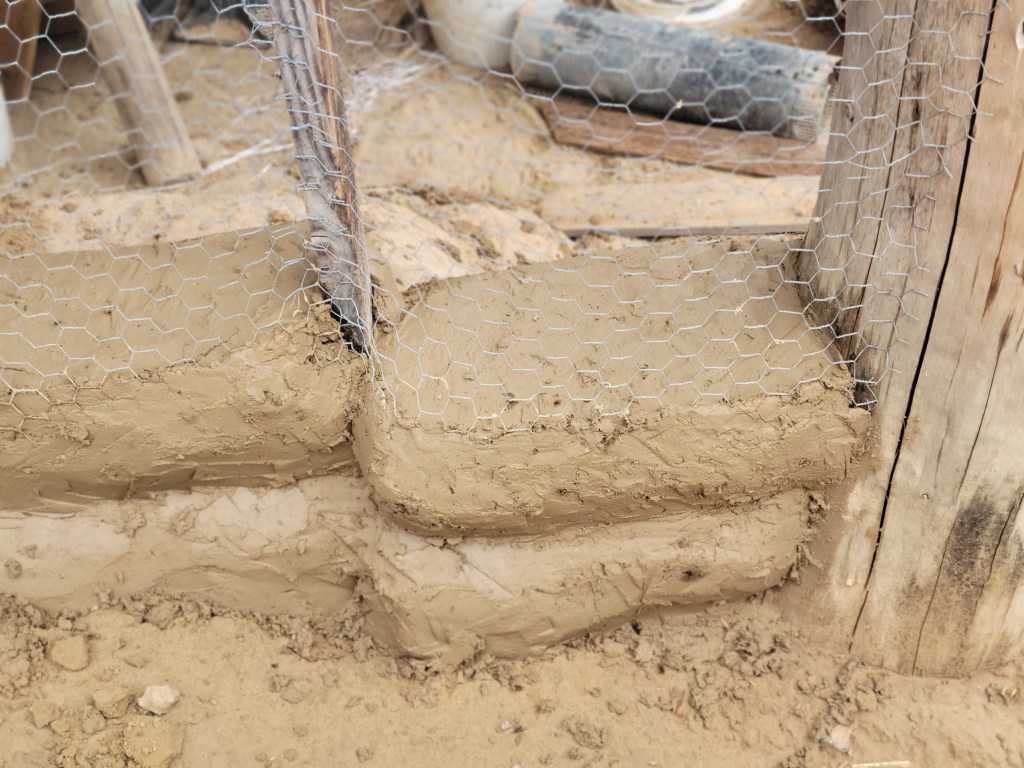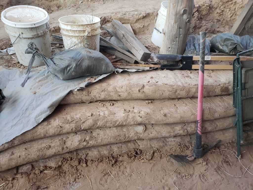 Earthbags are used structurally as the base for some walls, as anchors for posts, and as retaining walls. They also serve as benches around the interior and eventually as benches on the exterior.
