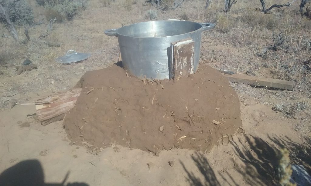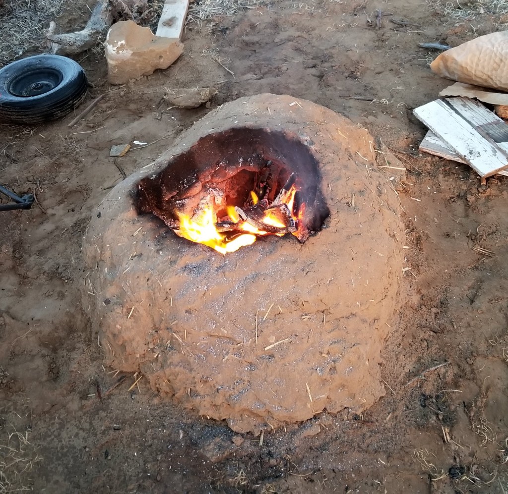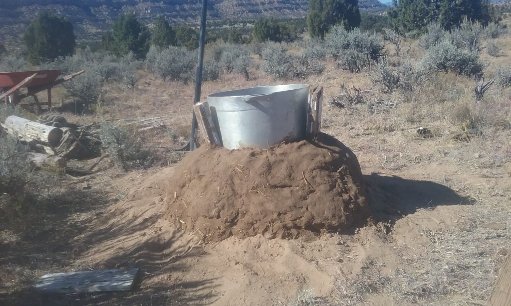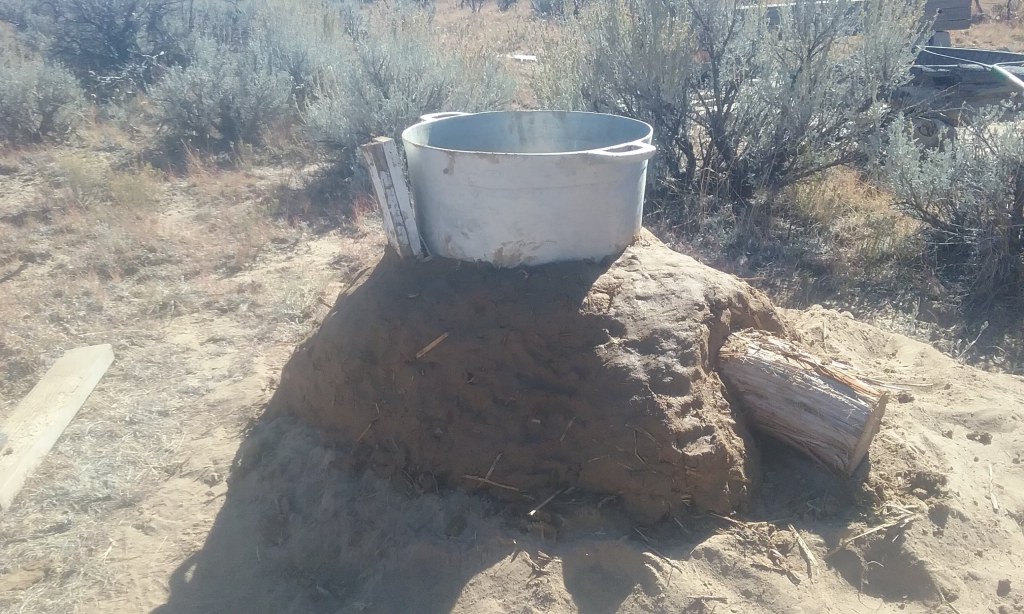 I built this based on a design Ianto Evans came up with for a more efficient way for West Africans to cook over a wood fire. I tailored it for a stew pot we’d bought at the Kaolack market in Senegal, but I didn’t execute the design well and it smoked too much with the pot on. It ended up being a great little campfire pit, though, perfect for one to four people. I added some height to it, and it burned really nicely with little smoke. And it kept its heat a long time after the fire burned down to embers. The cob warmed up just enough that you could warm your bare feet on it without burning them. Unfortunately, a cow stepped on it and destroyed it. I’m designing a new, improved version in my head.