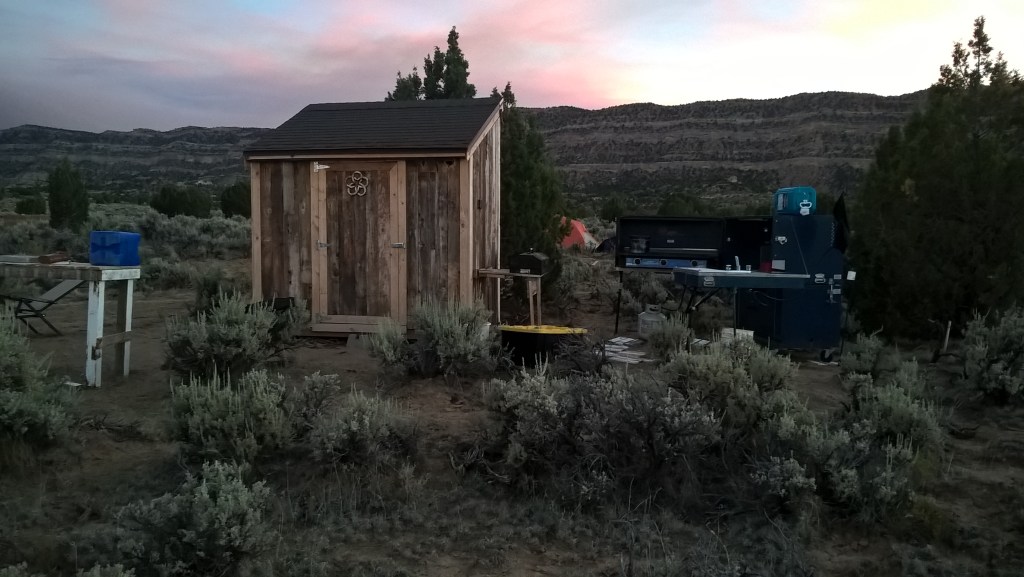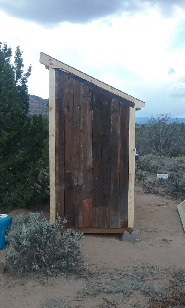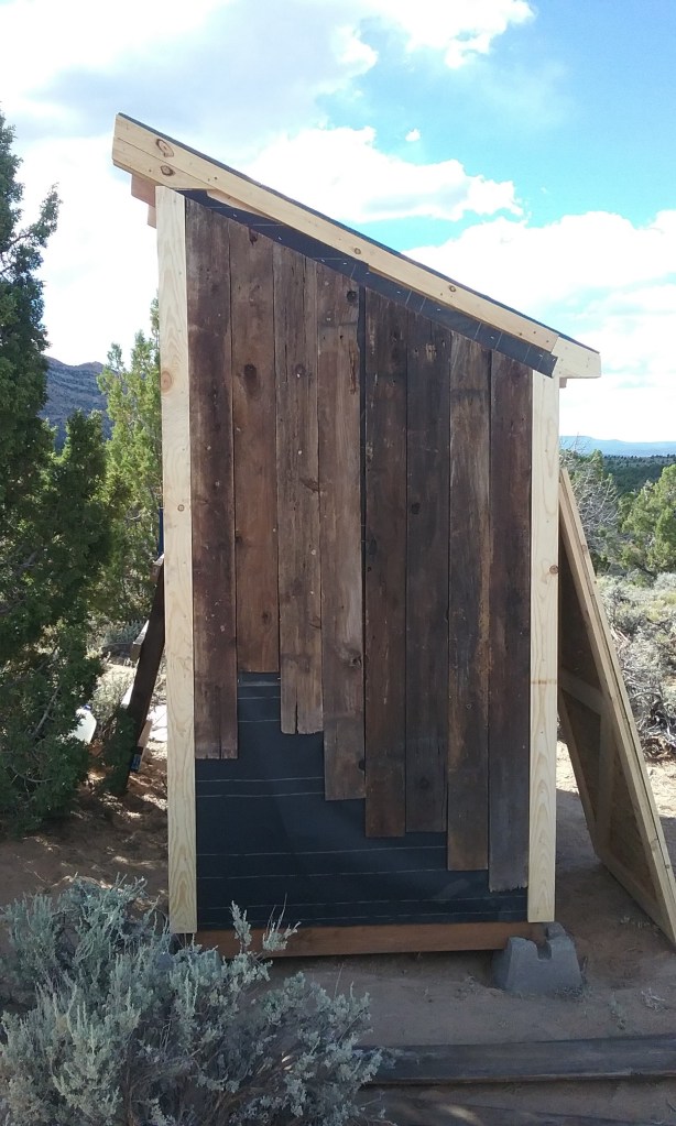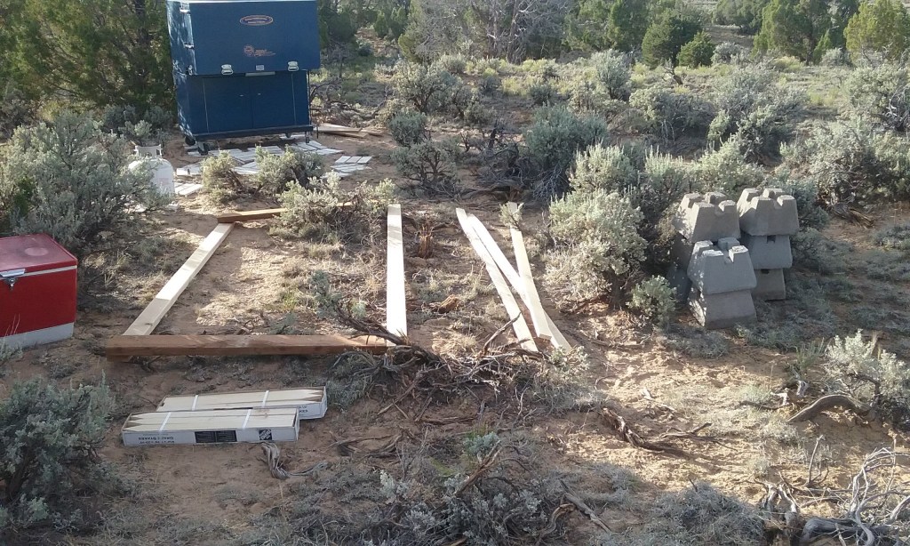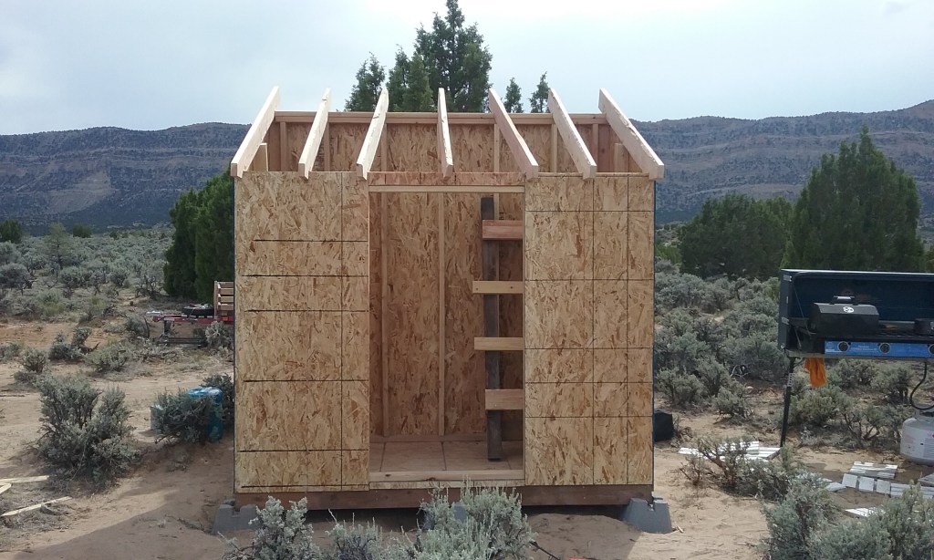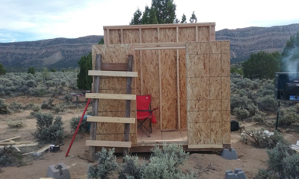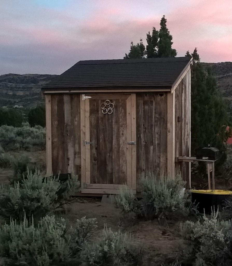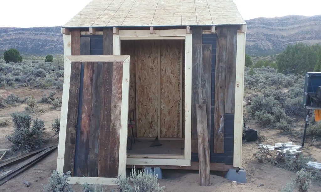 The shed was built out of necessity. Shortly after we bought the property, I cached some things in totes, and when we returned the stash was gone. When I complained about it at the hardware store, the cashier said, “The way I’ve always looked at it, a lock keeps an honest man honest. Build a shed.” I chose a simple design so it would go up quick and I could get to more interesting earthen building.